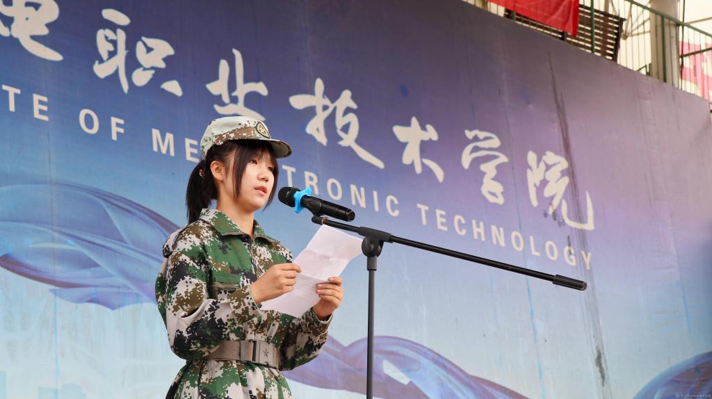 经管与艺术学院高铁乘务专业陈锴同学代表所有参训学生发言,她表示在军训中感受到了学院领导、老师和教官的关心,今后将以军人的标准严格要求自己,不断增强面对学习生活中各种困难的勇气。