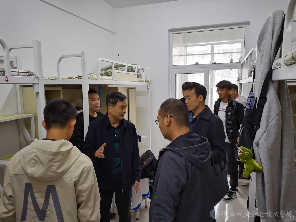 在学生宿舍,各位领导对学生的住宿环境、内务卫生、安全保障等进行了细致的检查,与同学们进行了亲切的交流,听取了同学们对宿舍和生活设施的意见,询问了学习、生活情况,了解学生思想动态,并对学生宿舍环境卫生、宿舍文化建设、宿舍学风建设等进行了现场指导。同时叮嘱同学们在平常的生活中,要严格遵守学校和公寓管理规定,务必注意财物安全、用水用电安全、人身安全,加强内务清理管理,保持宿舍环境卫生,主动打扫宿舍卫生并将垃圾随手携带出宿舍楼扔在规定的垃圾存放区域;勉励同学们勤奋学习、努力向上,培养良好的生活习惯,营造良好的学习氛围,做一位文明的大学生,为今后更好地适应社会打下坚实基础。