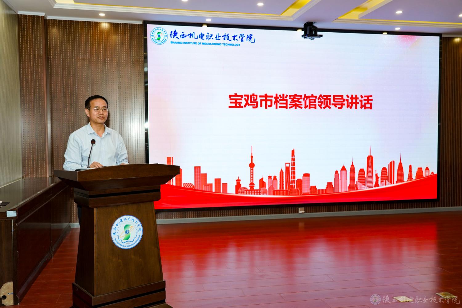 5月30日上午,陕西机电职业技术学院与宝鸡市档案馆在蟠龙校区联合举办2025年“请听档案说”国际档案日主题宣传活动。陕西机电职业技术学院党委书记伊逊智,党委副书记、纪委书记陈红梅,党委委员、副院长张克,党委委员、宣传部部长李明,宝鸡市档案馆副馆长闫海成、三级调研员崔果利等领导出席活动,学校各部门负责同志、专兼职档案员和师生代表100余人参加了活动。